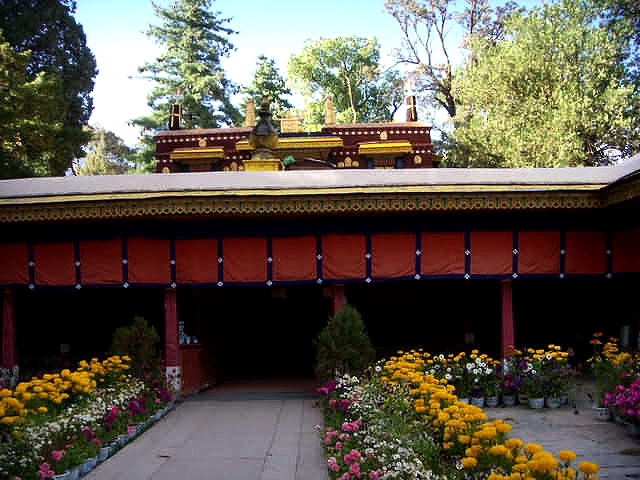 The park was built by the Seventh Dalai Lama in 1755, and became the summer residence of the Eighth Dalai Lama. The earliest building is Gesang Pozhang Palace built by Kelzang Gyatso. The 'New Palace' was begun in 1954 by the present Dalai Lama and completed in 1956. In addition to these two buildings, the garden contains an abundance of chapels, gardens, fountains, and pools as well as a variety of beautiful flowers and trees. To the west the Kalsang Potang built by Seventh Dalai Lama is a beautiful example of Yellow Hat architecture. Its fully restored throne room is also of interest.